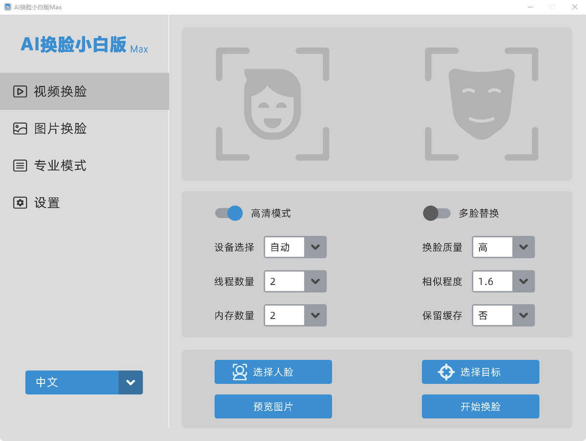 高清模式:打开之后以高清模式进行换脸。